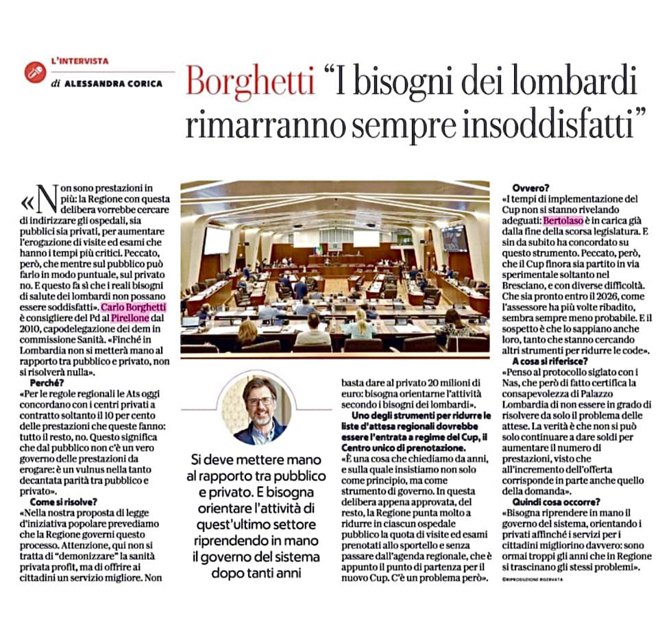 Repubblica ieri mi ha chiamato sull’ultima delibera regionale sulle liste d’attesa, e oggi è uscita l’intervista.